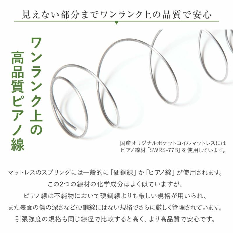 ベットの大きさが変わることになり買い替えました。 10年近く使ってきた信頼がありましたので、買い替えは迷うことなくこのマットレスにしました。 新しいマットレスで気分も良く、いつも通りの快適な眠りにつけております。 値段は手ごろで、購入時のサポートも親切丁寧で手厚いです。 マットレスの質も良いので快適に眠れ、そして長く使えます。 マットレス購入の選択肢に入れて損はないと思います。 もし行ければ、岡山のショールームで現物を見て触りながら、知識豊富なスタッフの方に説明を聞くこともできます。