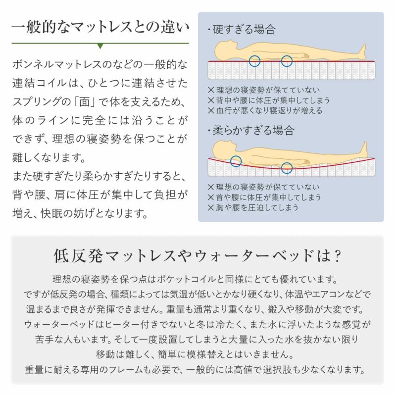 当店で人気No.1のオリジナルマットレス。身体を点で支えて、理想的な寝姿勢に整えます。販売累計6万本を突破した納得の寝心地です。