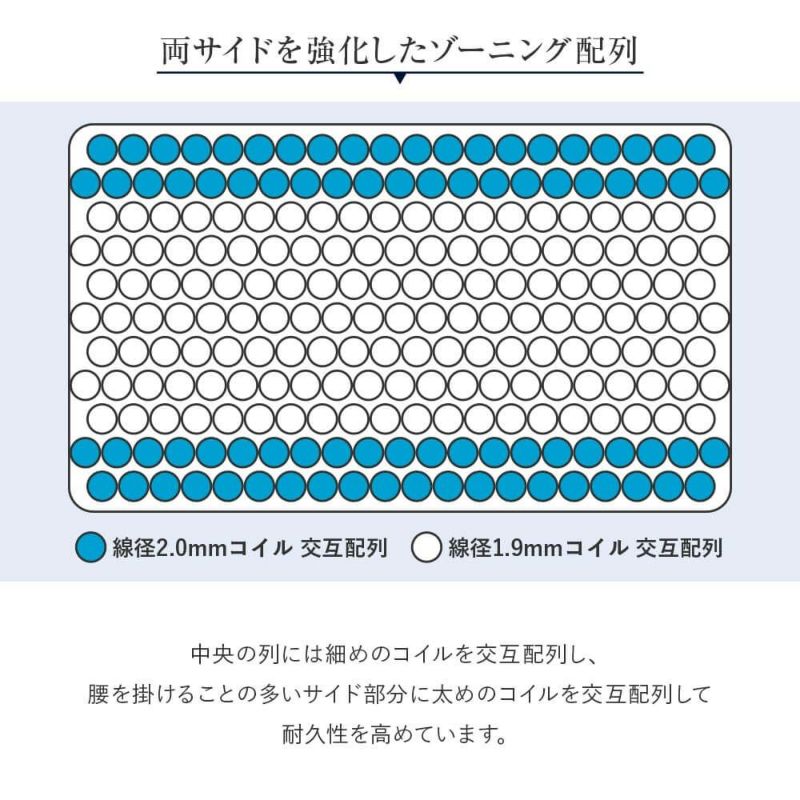 全米トップクラスのシェアを誇るSerta(サータ)。5.8インチポケットコイルの交互配列を中央に配置し身体をしっかりと支えます。腰掛ける事が多い両サイドには太いコイルを交互配列、耐久性を高めています。高級ホテルをはじめとして数多くのホテルに採用されているSerta(サータ)マットレスを、ベストプライスでお届けいたします。