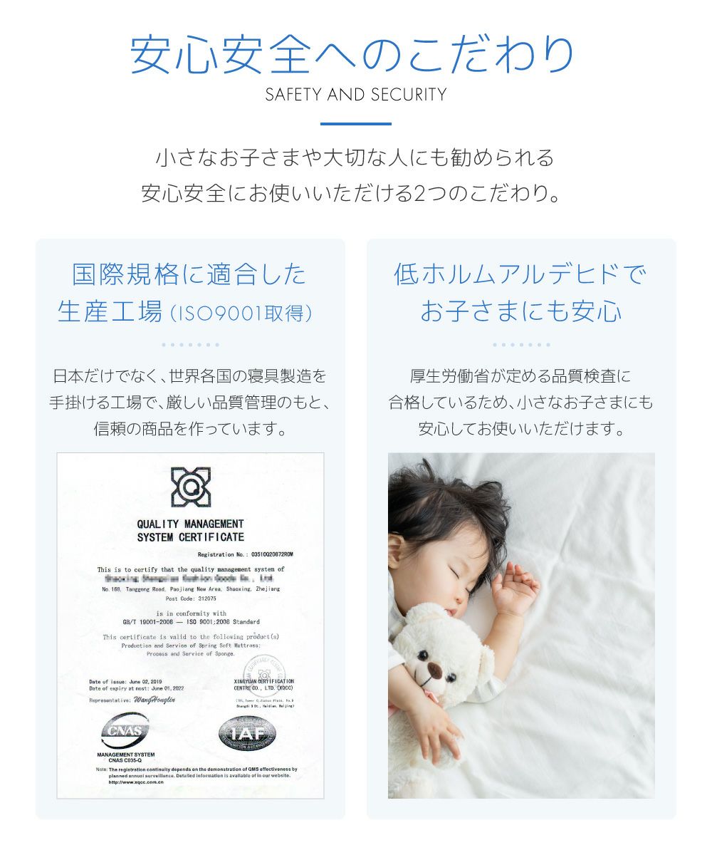 シングルサイズのマットレスを2つ並べて使用すればキングサイズよりも広くなるので、家族そろってお休みになられたい方には2枚使用がおすすめです。