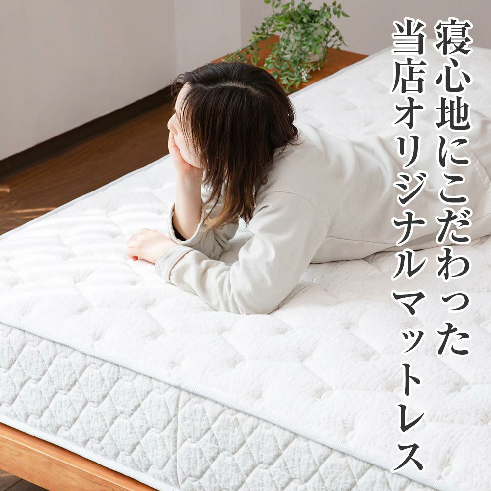 柔らかすぎず硬すぎず、身体へのフィット感を追求したコイル配列に、さらに表面的にふっくらと包まれるような感触をプラスした、当店オリジナル ポケットコイルマットレスです。