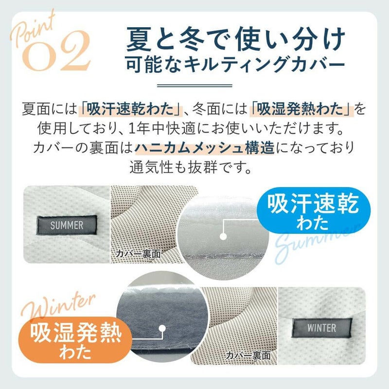 防ダニ・抗菌防臭・吸湿発熱わた使用