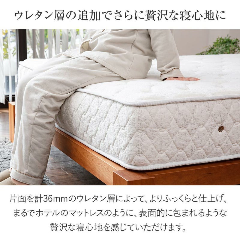 柔らかすぎず硬すぎず、身体へのフィット感を追求したコイル配列に、さらに表面的にふっくらと包まれるような感触をプラスした、当店オリジナル ポケットコイルマットレスです。