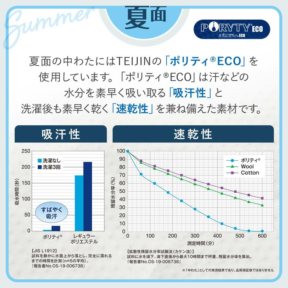 防ダニ・抗菌防臭・吸汗速乾わた使用