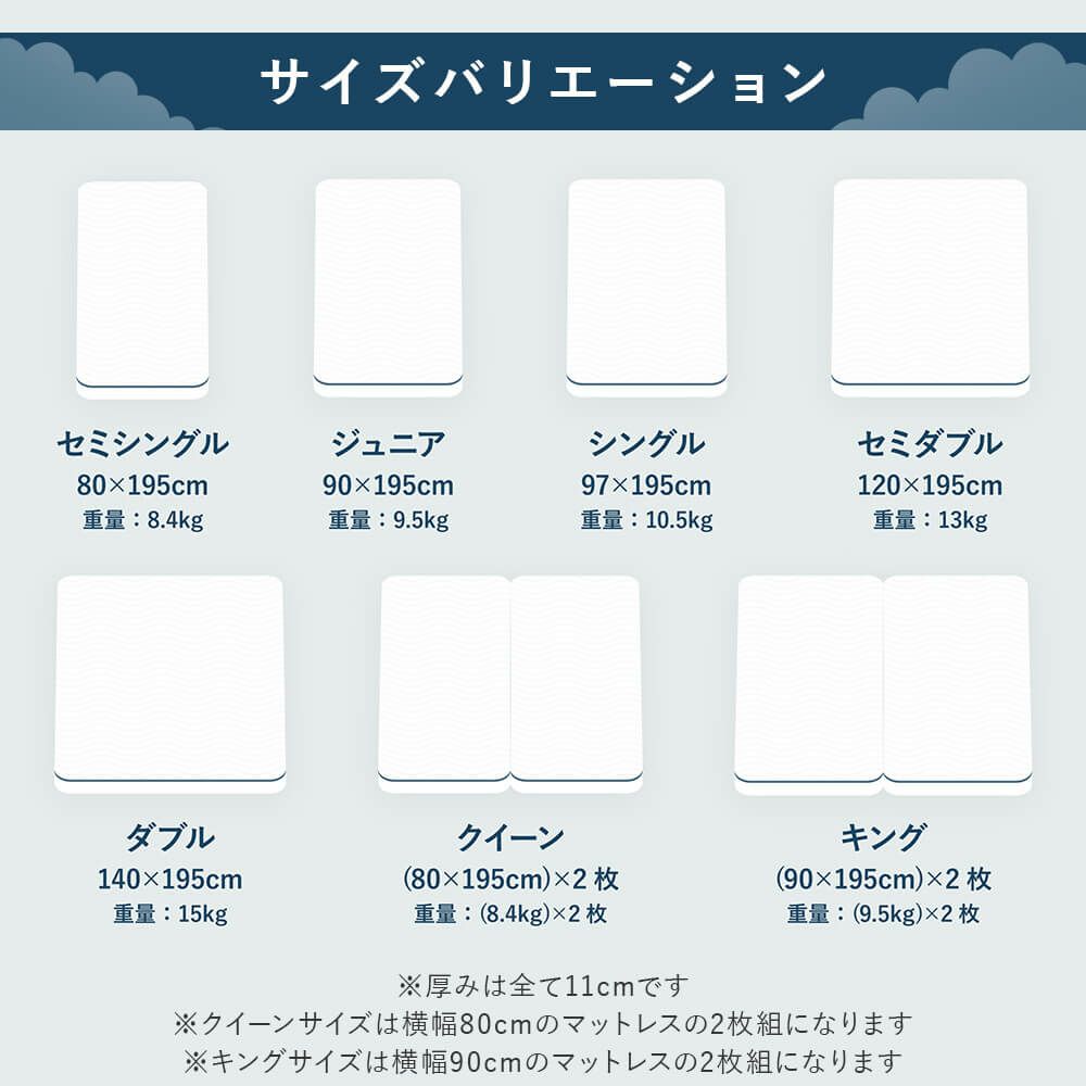 商品サイズ幅120cm × 長さ195cm × 高さ11cm