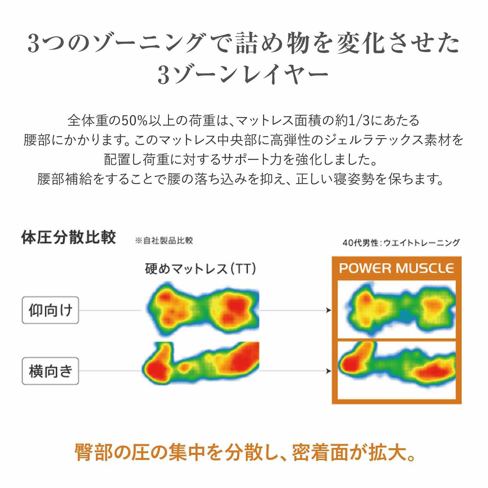 「シーリー・スポーツモデル」は、体型に応じた最適な体圧の分散力で、マットレス全体であなたの”マッスル”を包み込みます。3つのゾーニングで詰め物を変化。臀部の沈み込みを軽減し、腰・臀部・腿のマットレスへの密着面を高めます。たとえば、「身体の凹凸がはっきりとしたメリハリ体型の方」「臀部の筋力が発達するコンタクトスポーツプレイヤー」「ラグビーや格闘技などのパワー自慢の方」へお勧めです。