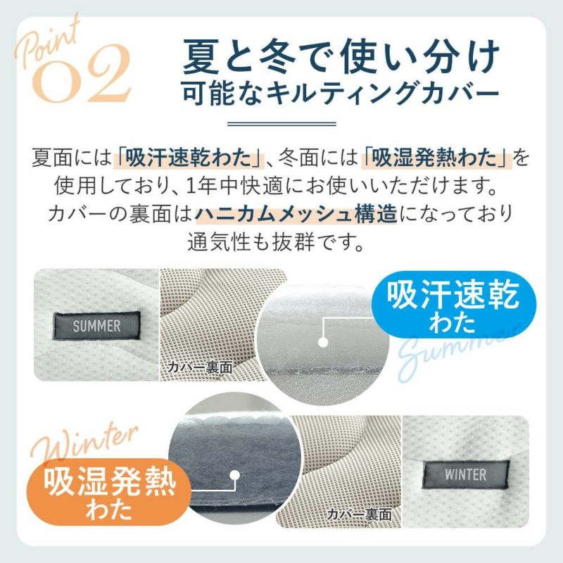 防ダニ・抗菌防臭・吸汗速乾わた使用