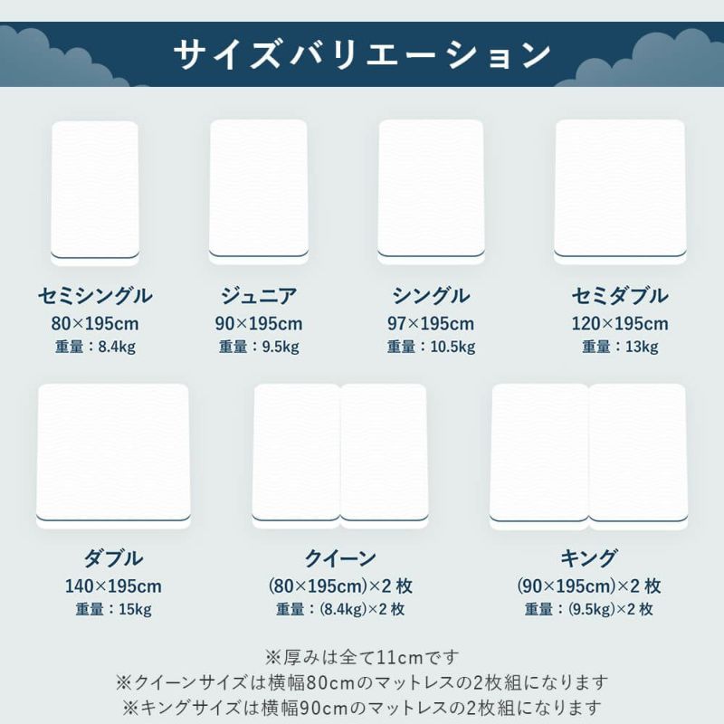 商品サイズ幅140cm × 長さ195cm × 高さ11cm