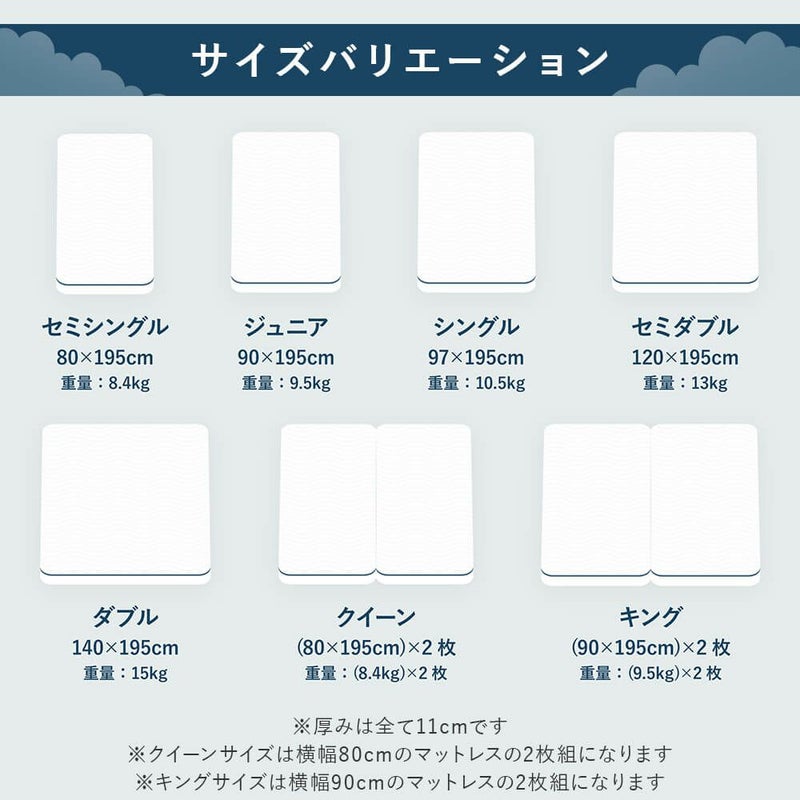 商品サイズ幅160(80cm×2枚)cm × 長さ195cm × 高さ11cm