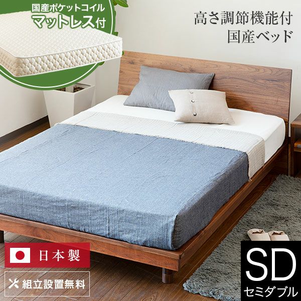 ウォールナット無垢材を使った、シンプルで落ち着いたデザインが魅力の木製ベッド。安定感のある丈夫な脚は、高さを3段階に変えられる使い勝手の良いデザイン。オイル塗装仕上げなので使い込む程にツヤがでて味わいが増し、無垢材の美しさが引き立ちます。