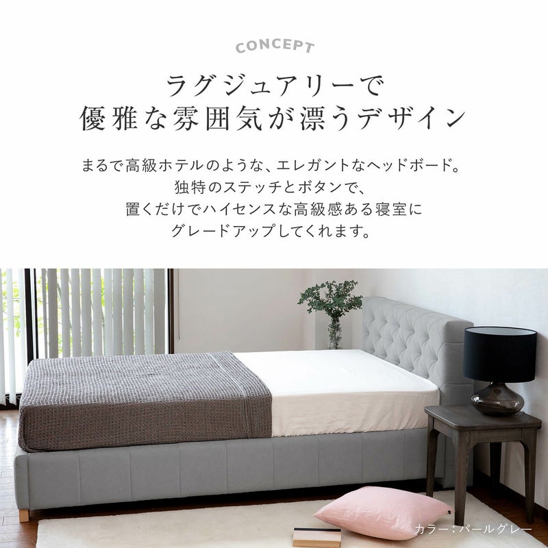 ヘッドボードを背もたれし、読書や映画鑑賞をするなど快適にくつろぐことのできるベッドフレーム。シンプルなデザインのフレームは3色からお選びいただけます。