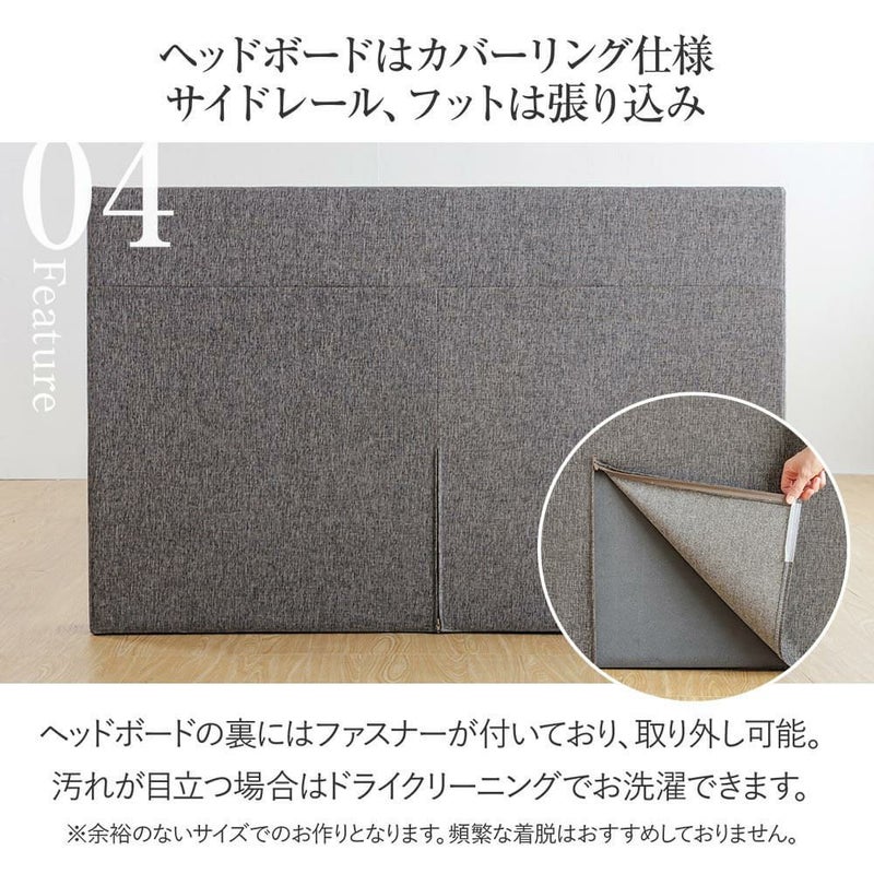 頭側ヘッドボードは衛生的なカバーリング仕様のため取り外しが可能です。ドライクリーニングにてお洗濯いただけます。