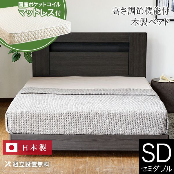 シンプルなデザインかつ、コンセントとLED照明付きという機能性も抜群。マットレスの厚みやロボット掃除機のご使用など、お好みに合わせて高さを変更できる継ぎ脚仕様です。