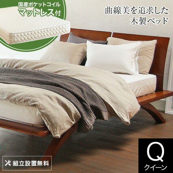 【組立設置サービス付】オアシス ブラウン(クイーン)【国産ポケットコイルマットレス付】【組立設置付】