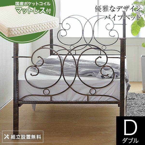 アトランタ(ダブル)【国産ポケットコイルマットレス付】【組立設置付】