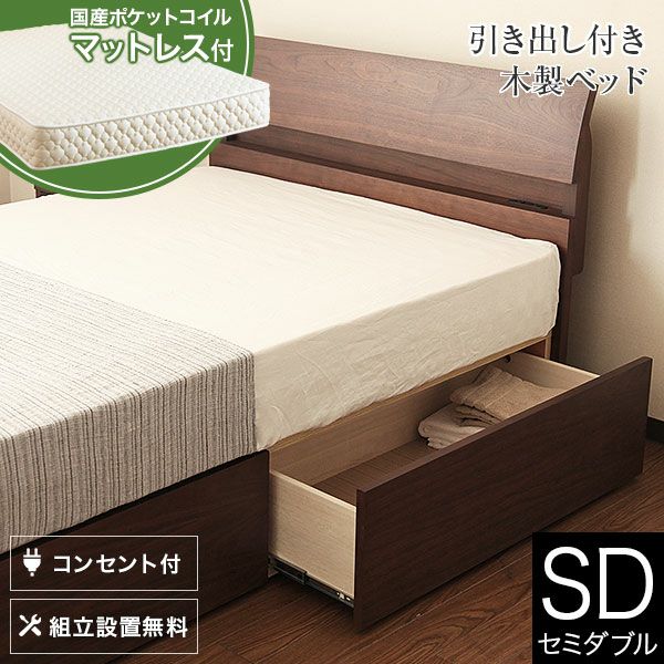 ドミール 引き出し付[ブラウン](セミダブル)【国産ポケットコイルマットレス】【組立設置付】
