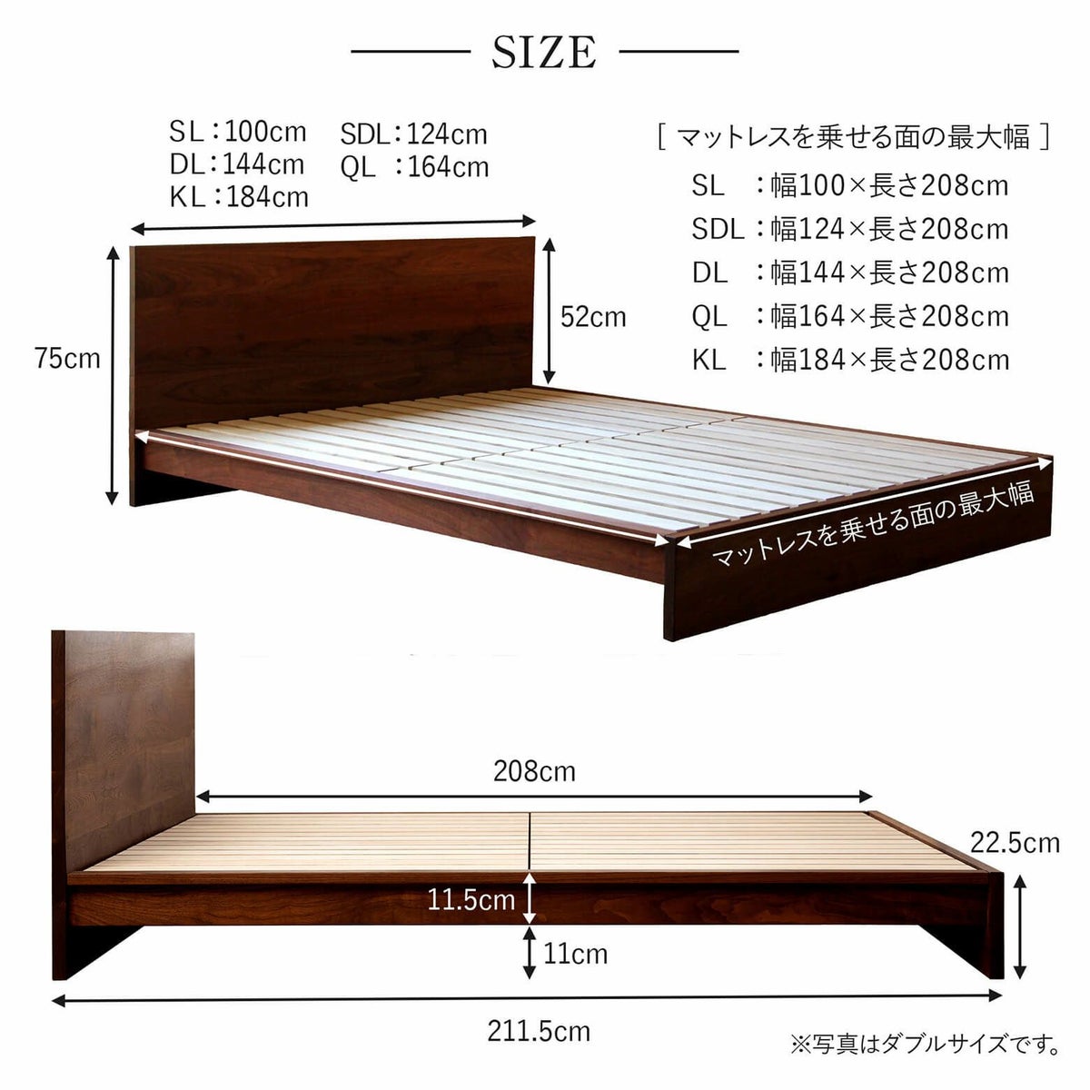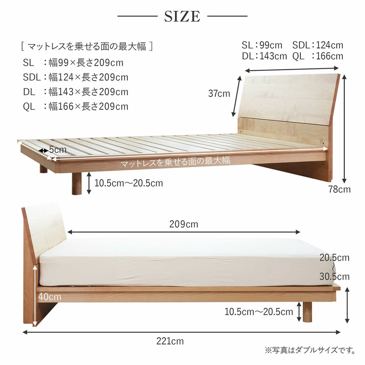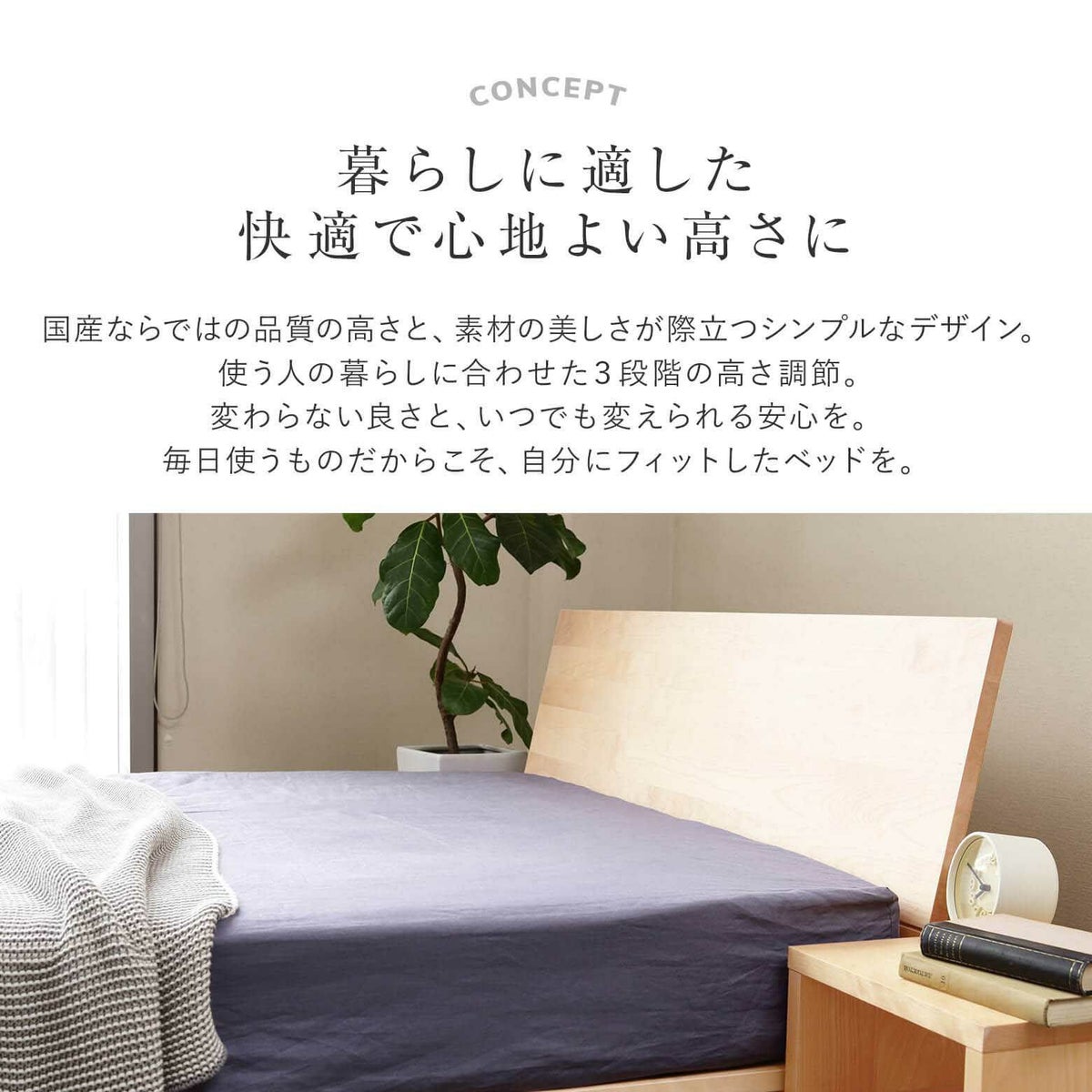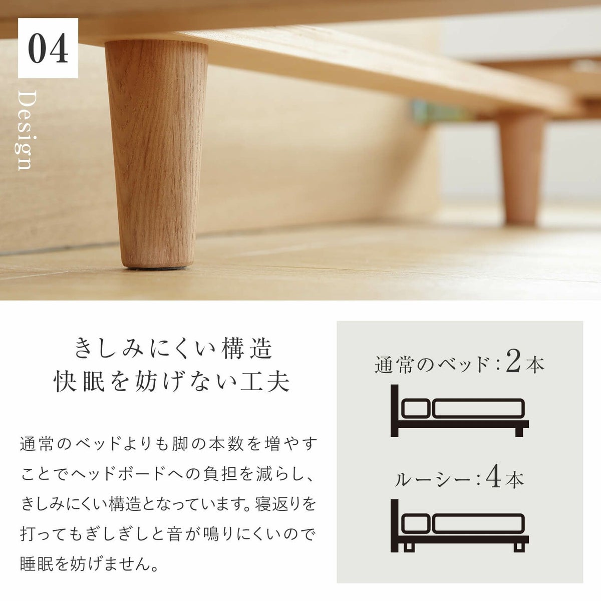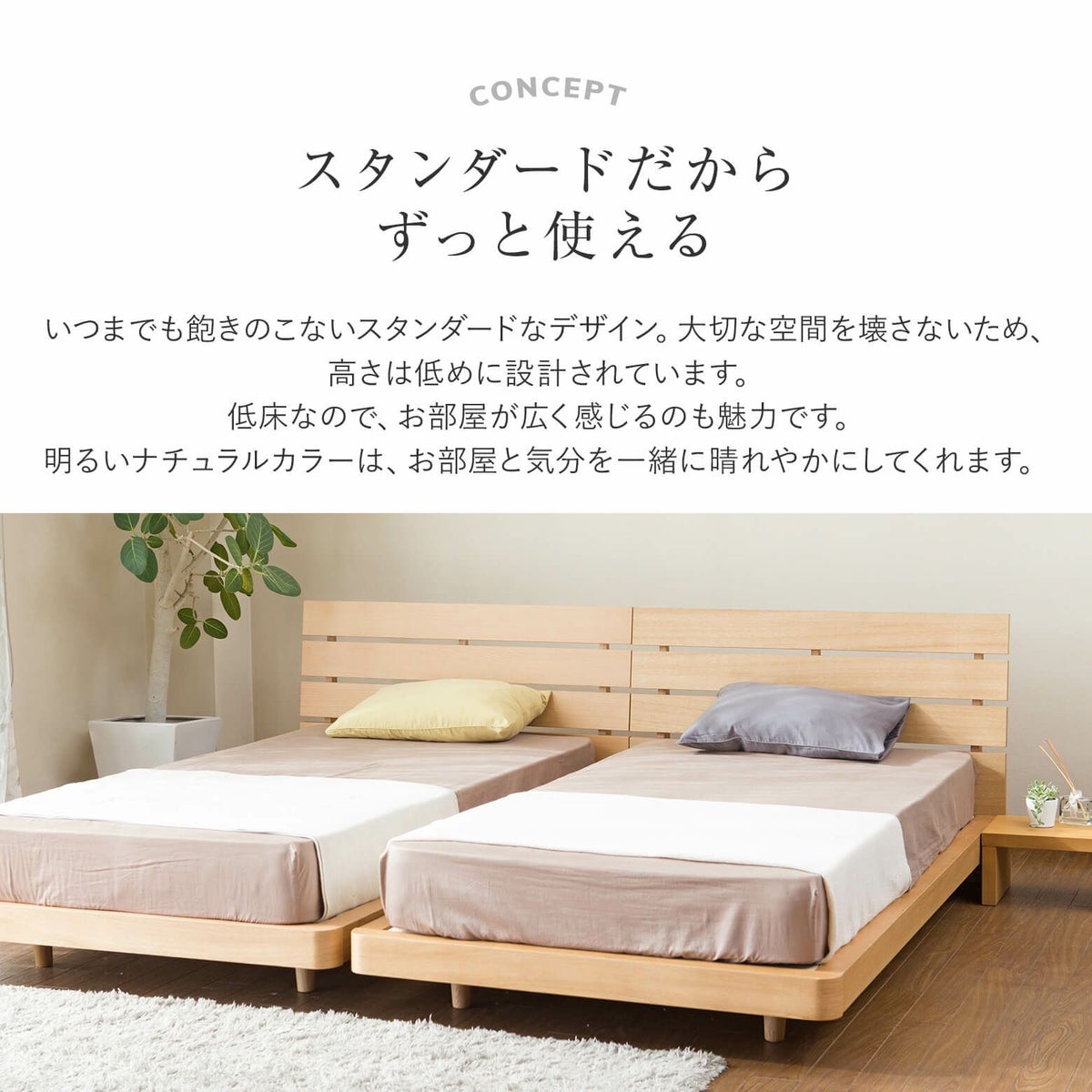 通常のベッドよりもおよそ12cm長くなるため、高身長の方におすすめです。
