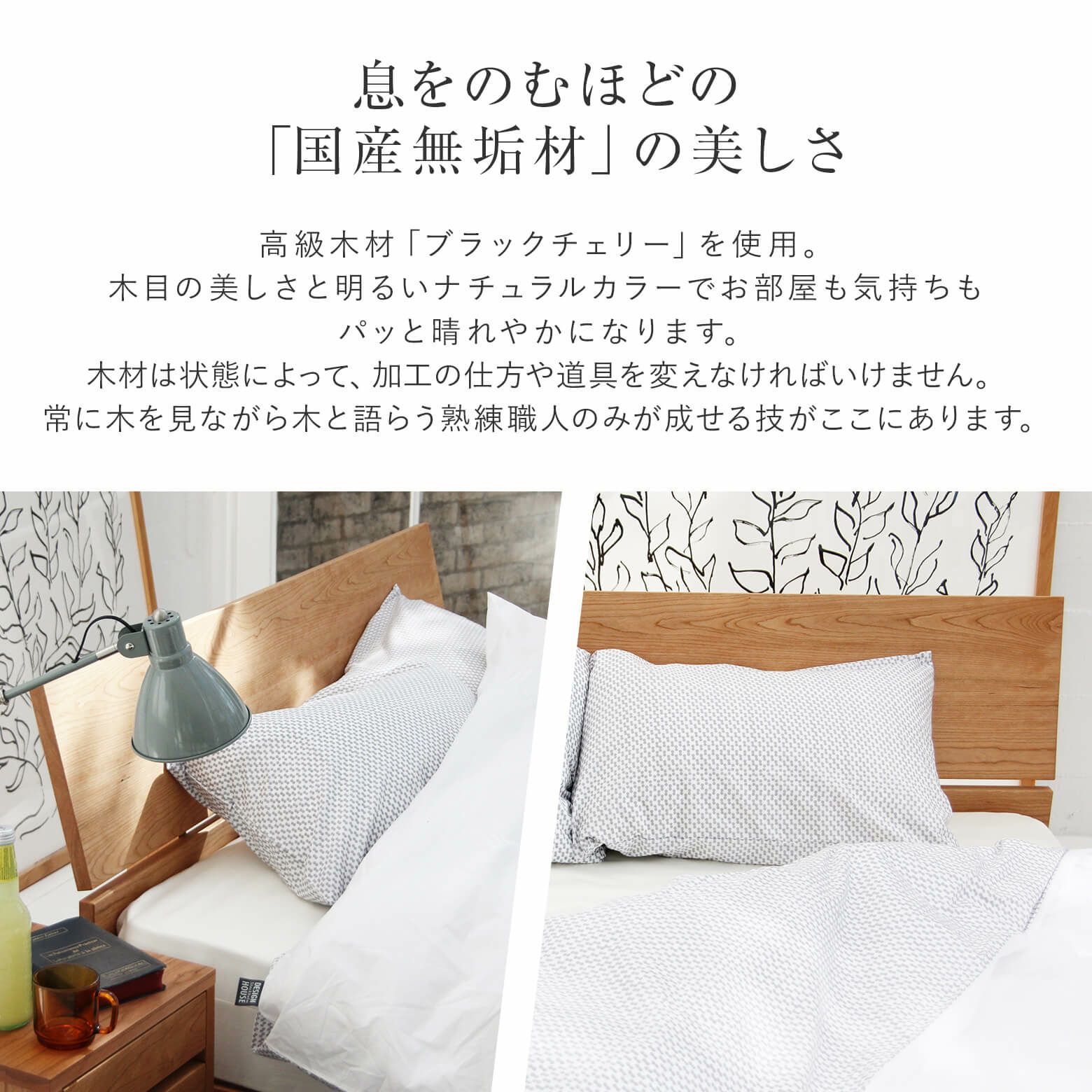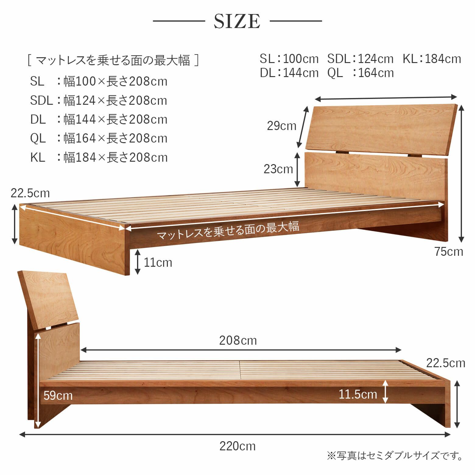お選びいただいたベッドフレームと同じサイズのマットレスがついてきます。