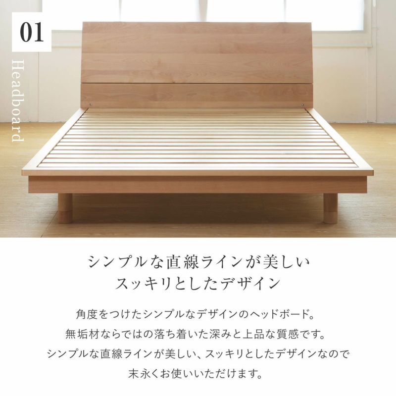 バーチ無垢材を使った、シンプルで落ち着いたデザインが魅力の高級木製ベッド。安定感のある丈夫な脚は、高さを3段階に変えられる使い勝手の良いデザイン!オイル塗装仕上げなので使い込む程にツヤがでて味わいが増します。通気性の良いスノコ仕様。