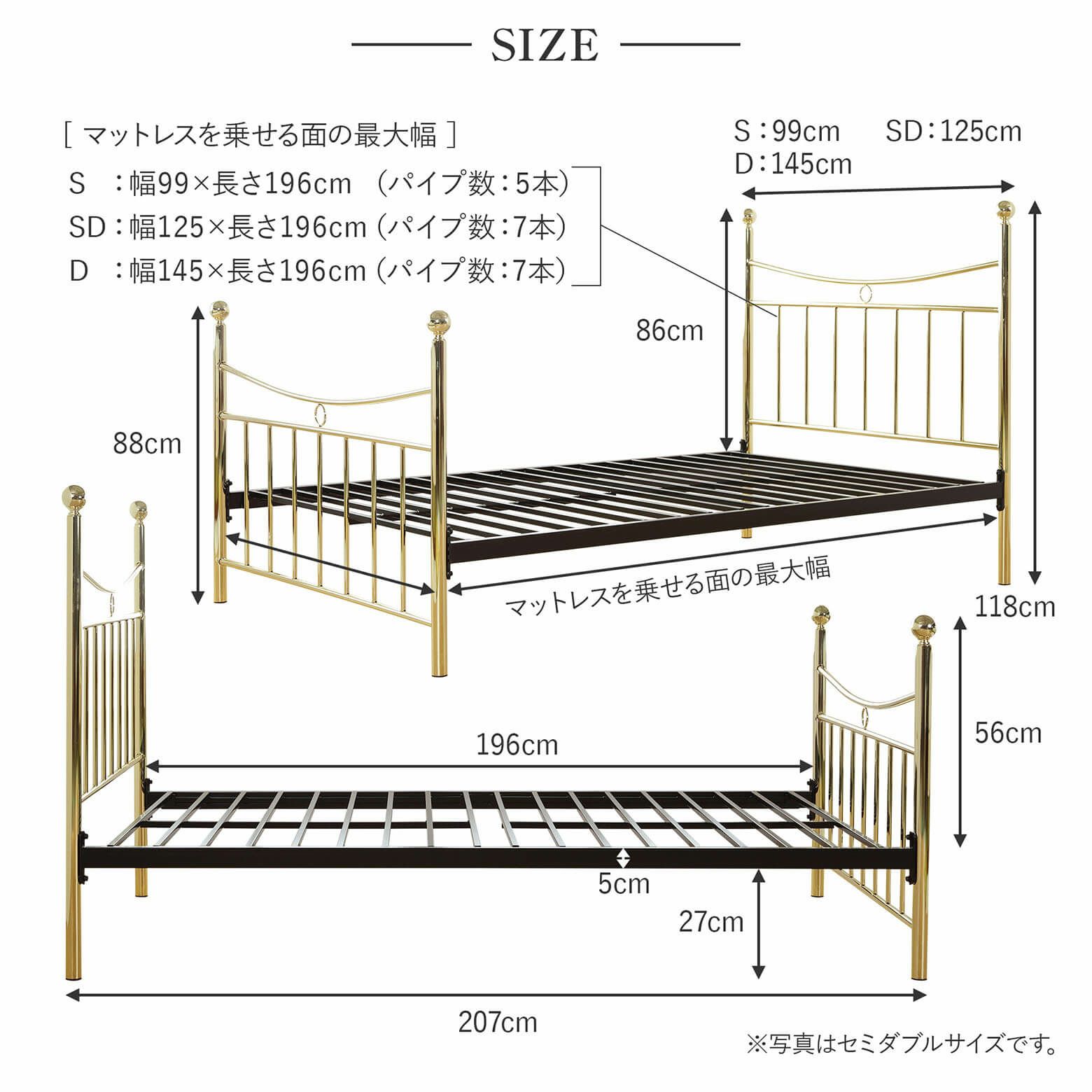 パイプベッド 金属製ベッド シングルベッド ベッドフレームのみ 送料無料 【シングルサイズ】