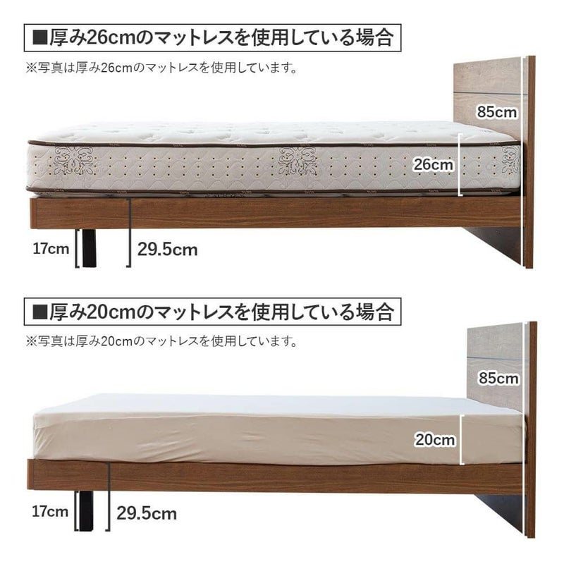 お選びいただいたベッドフレームと同じサイズのマットレスがついてきます。