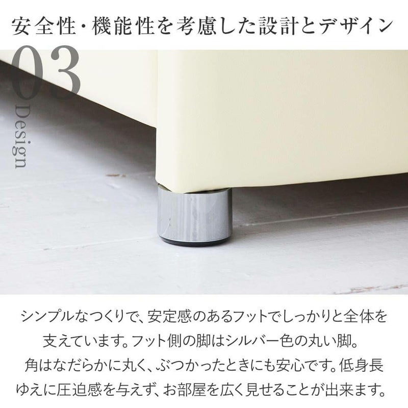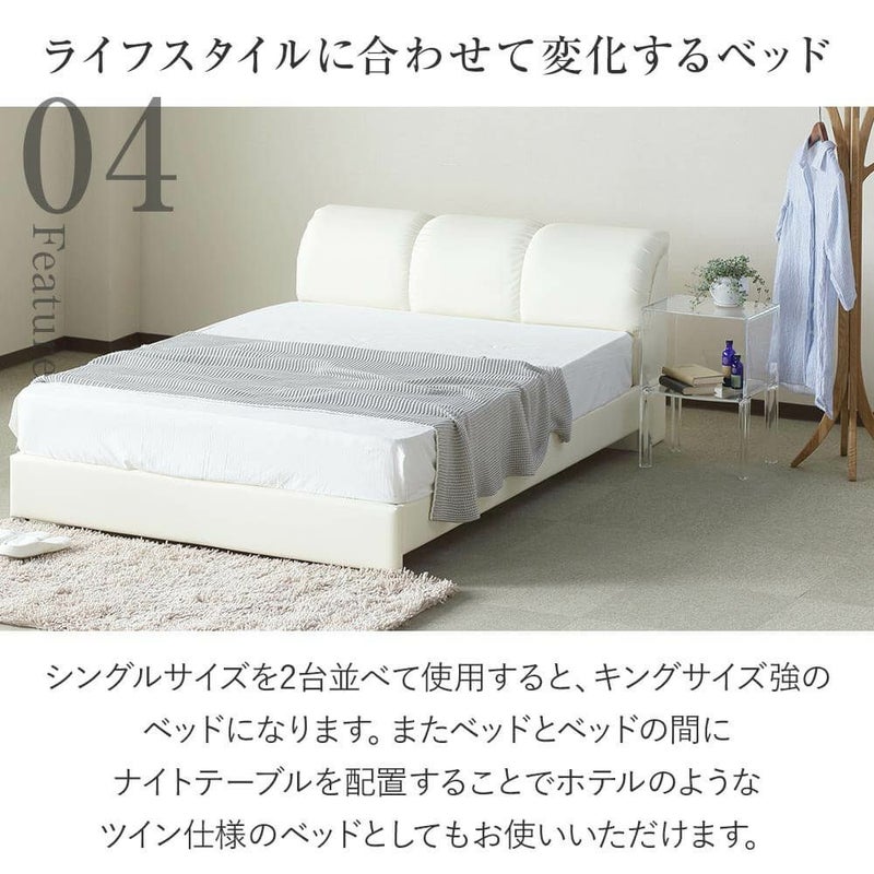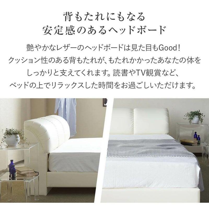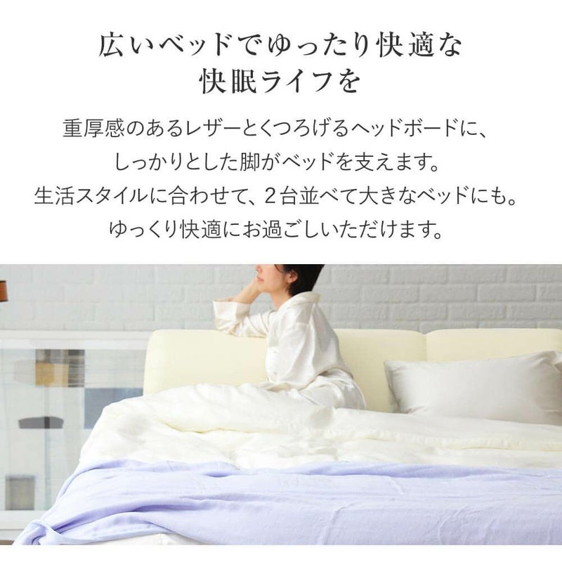 国内自社工場生産の日本製レザーベッド。カジュアルでおしゃれなデザインが人気。読書に、テレビ鑑賞に、クッション性のある背もたれがあなたの体をしっかり支えてくれます。通気性のよいスノコを使用。ロングサイズもあります。ビーナスベッドオリジナル商品。シングルサイズのベッドを2台並べて使用すると、キングサイズのベッドとしてご使用できます。