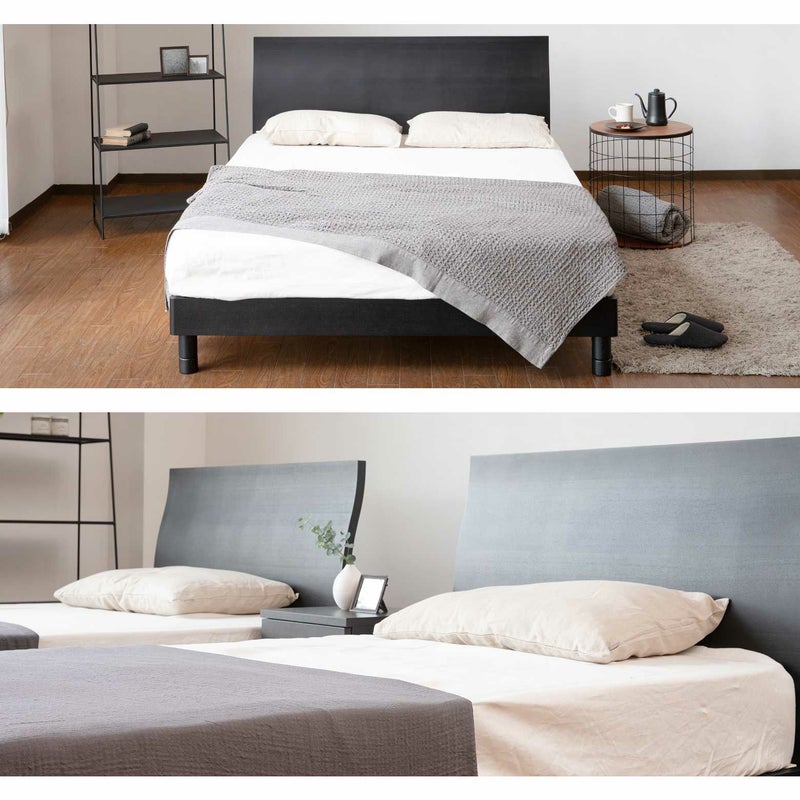 ヘッドボードの曲線がエレガントな雰囲気を演出します。その曲線は見栄えだけでなく、もたれかかった時に背中のおうとつにぴったりフィットし、ベッドの上での読書やテレビ鑑賞に役立ちます。モノトーンコーデにもオススメのブラック色です。
