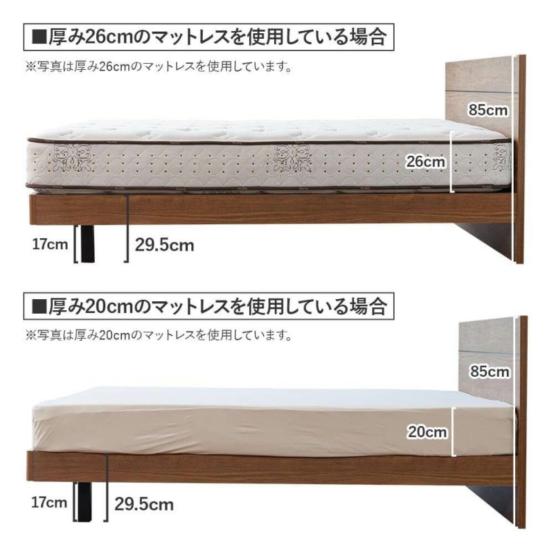 お選びいただいたベッドフレームと同じサイズのマットレスがついてきます。