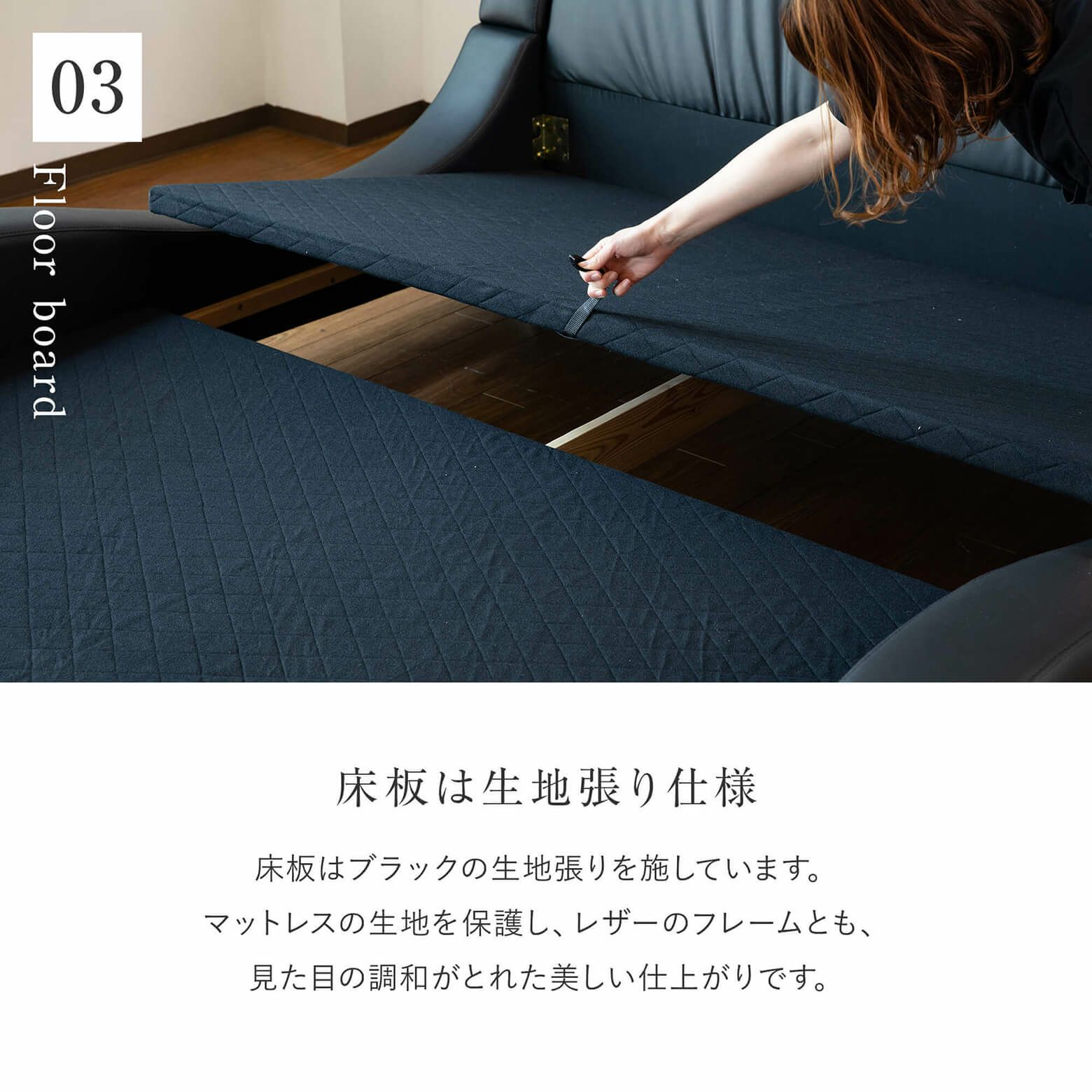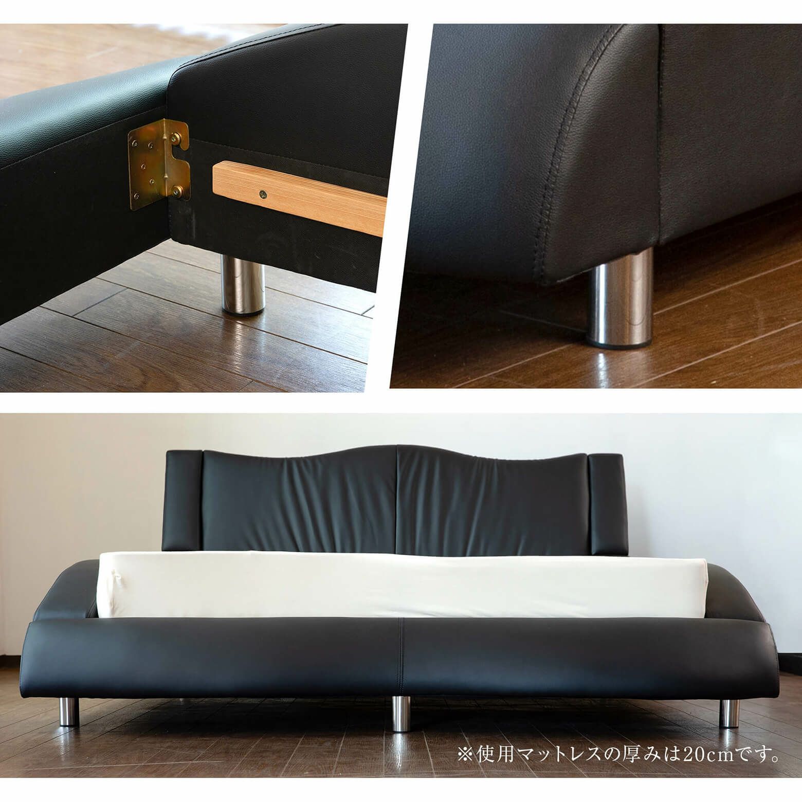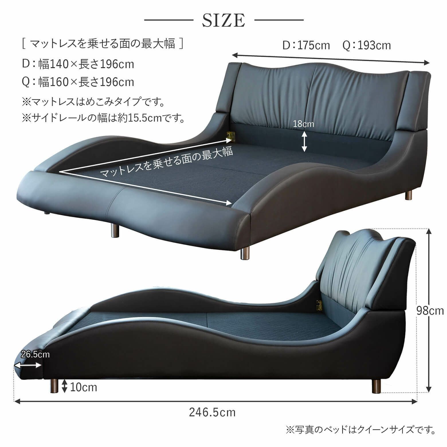 お選びいただいたベッドフレームと同じサイズのマットレスがついてきます。