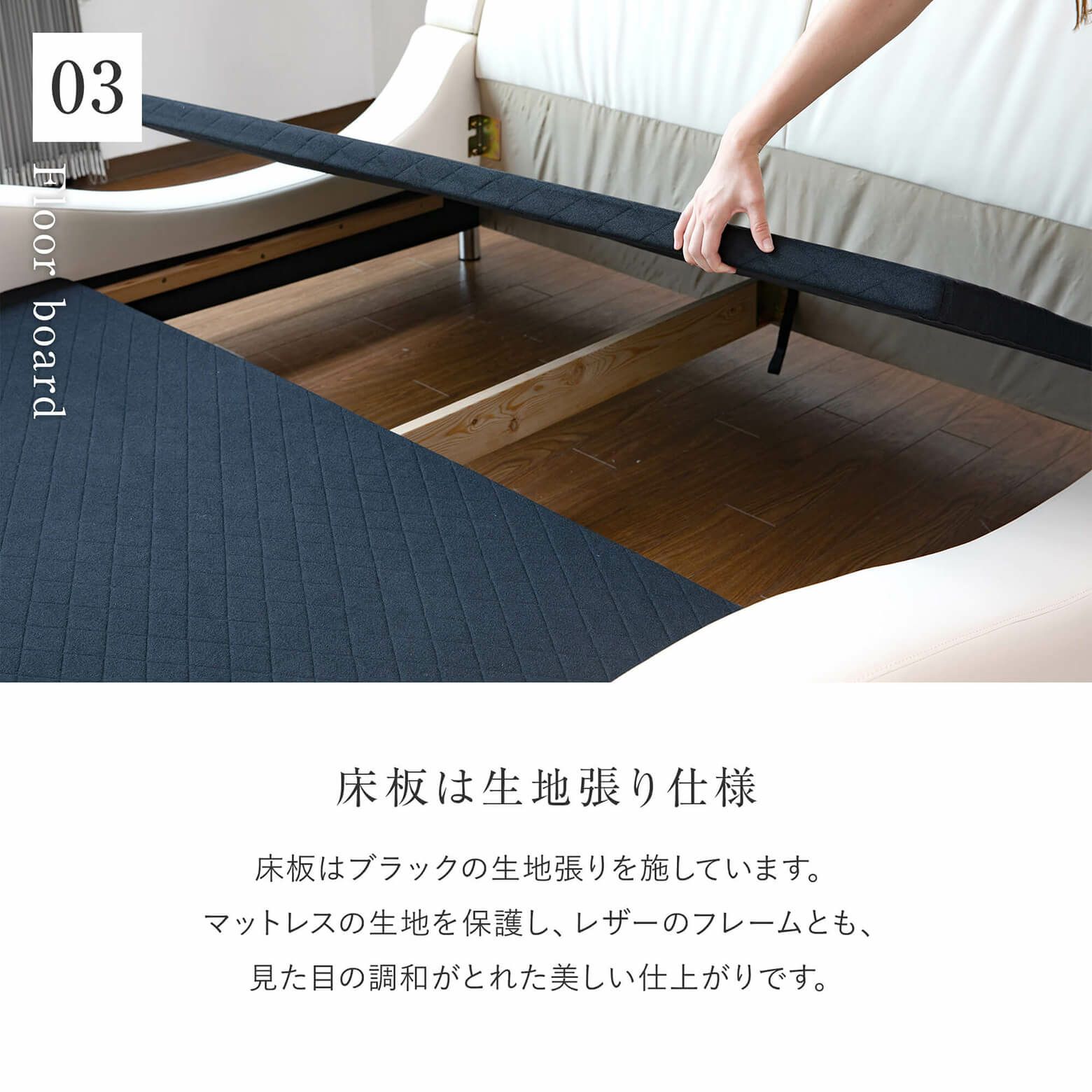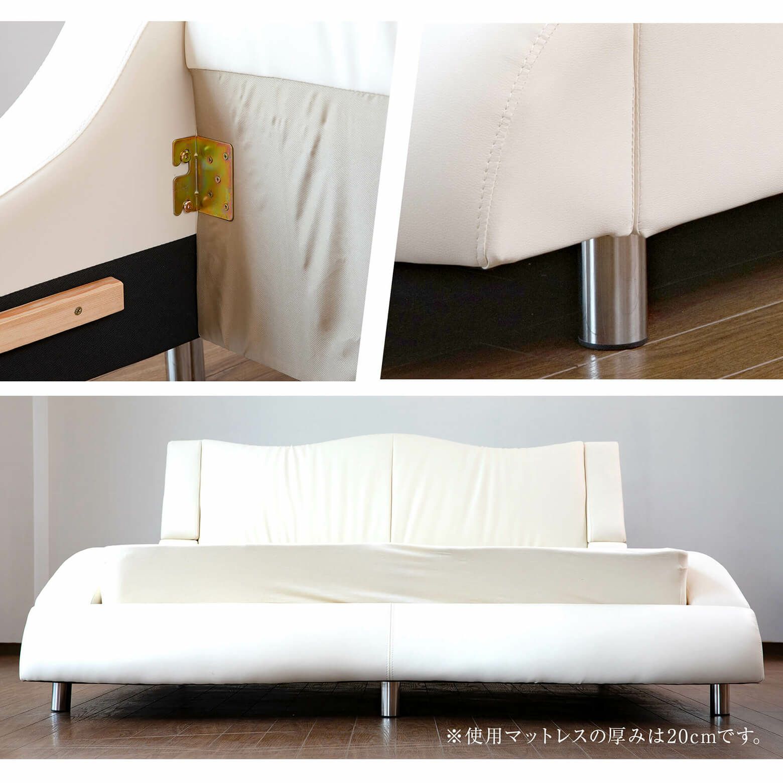 お選びいただいたベッドフレームと同じサイズのマットレスがついてきます。