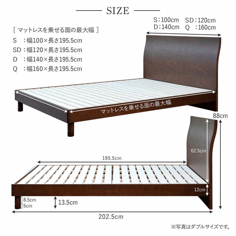お選びいただいたベッドフレームと同じサイズのマットレスがついてきます。
