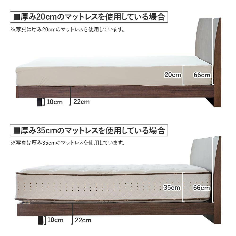 お選びいただいたベッドフレームと同じサイズのマットレスがついてきます。