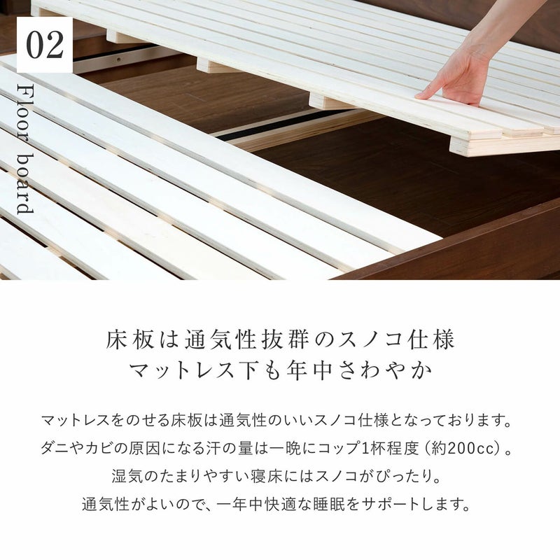お選びいただいたベッドフレームと同じサイズのマットレスがついてきます。