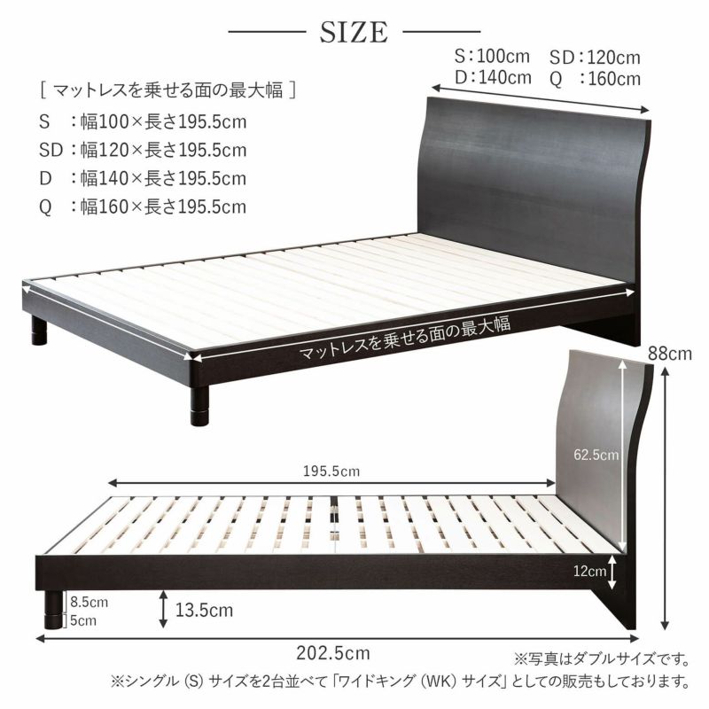お選びいただいたベッドフレームと同じサイズのマットレスがついてきます。