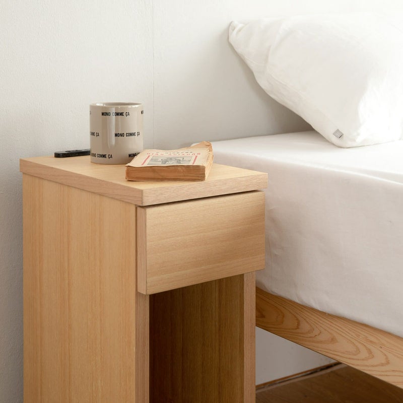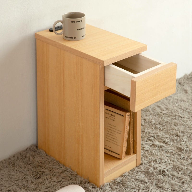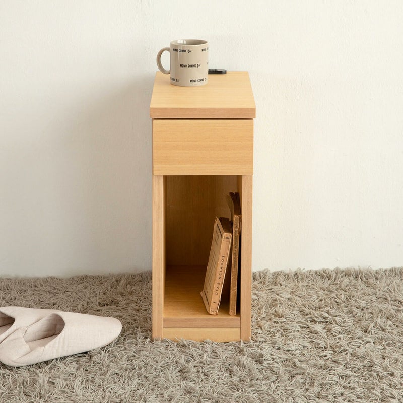 コンセント付きのナイトテーブル、枕元に小物や携帯電話を置くのに重宝します。横幅20のスリムタイプなので、場所を取りません。シンプルなデザインなので、リビングやお子様のお部屋にもオススメです。