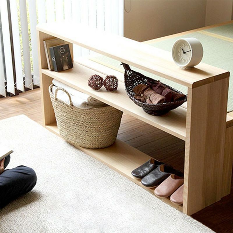 たたみベッド「山吹」用フリーシェルフです。シェルフの幅とベッドの幅は同じサイズです。ベッドに合わせたサイズをお選びください。頭側、足元側、自由にレイアウトを楽しめます。