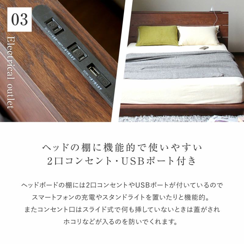 木製ベッド ダブルベッド 日本製 国産 コンセント付き USBポート付き ベッドフレームのみ 送料無料 【ダブルサイズ】