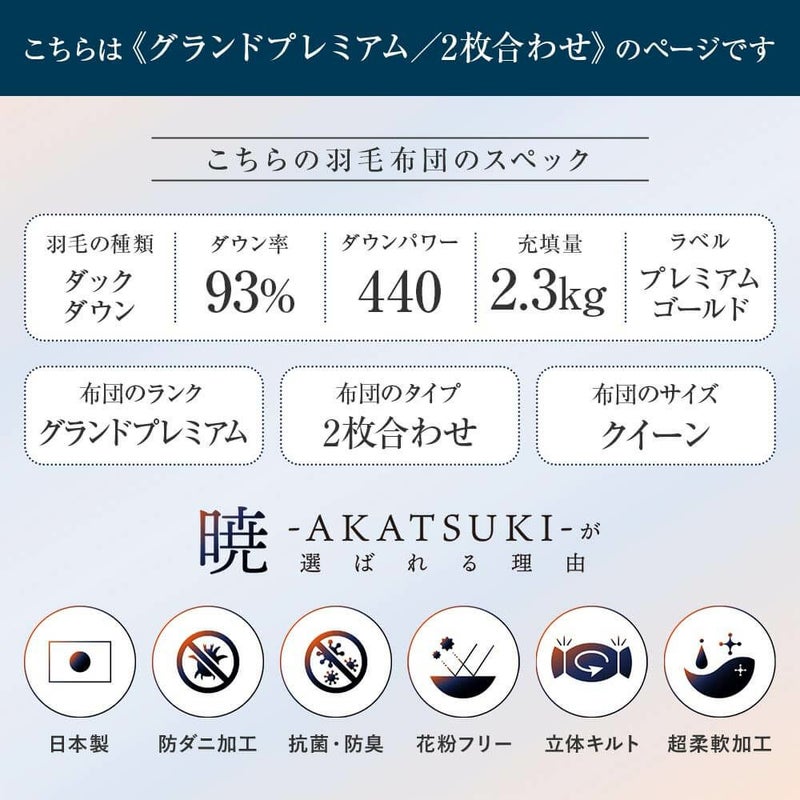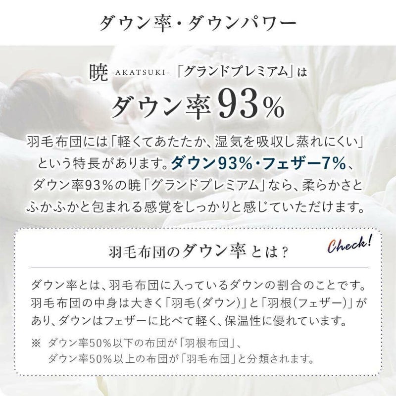 暁-AKATSUKI- グランドプレミアム2枚合わせ羽毛布団 210 x 210cm