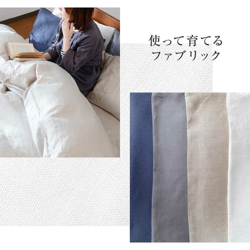 フランス産の上質なリネン生地を使い、ふんわりと柔らかな肌触りに仕上げました。優れた吸水性と発散性で年中快適、使い込むほどにふっくら柔らかく肌に馴染みます。