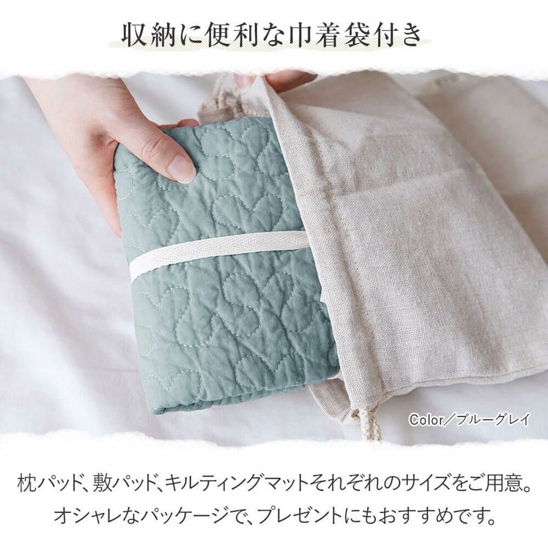 韓国インテリアでお馴染みの生地「イブル」。デコボコしたキルティングを施しているので立体感と心地よさが魅力。本製品のイブル生地や中綿は、コットン100%だから赤ちゃんにも優しい素材でできています。使い込むほどにふんわりと柔らか。夏はサラっと、冬はあたたかく、1年中快適にお使いいただけます。