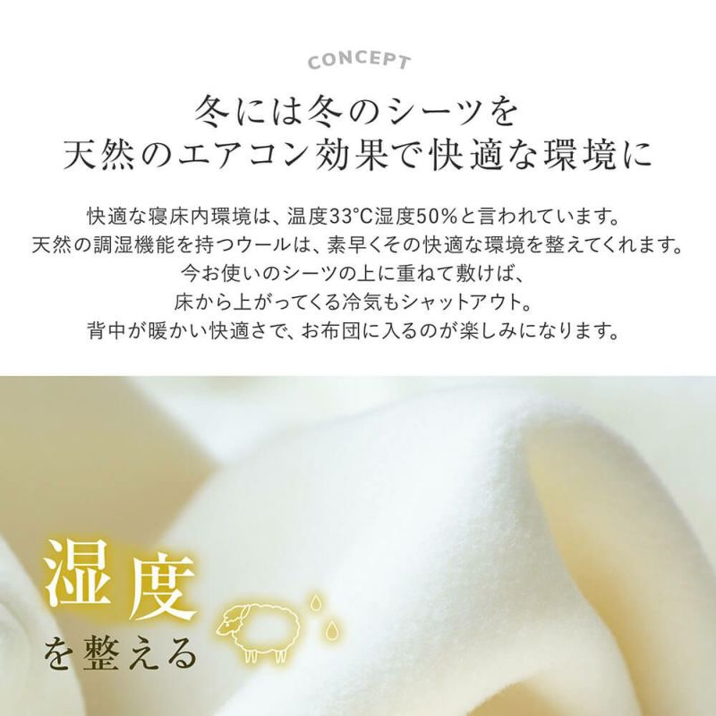 オーストラリア産メリノウールを使用し、和歌山県の毛布工場で生産したパッドシーツです。フカフカと優しい肌触り。