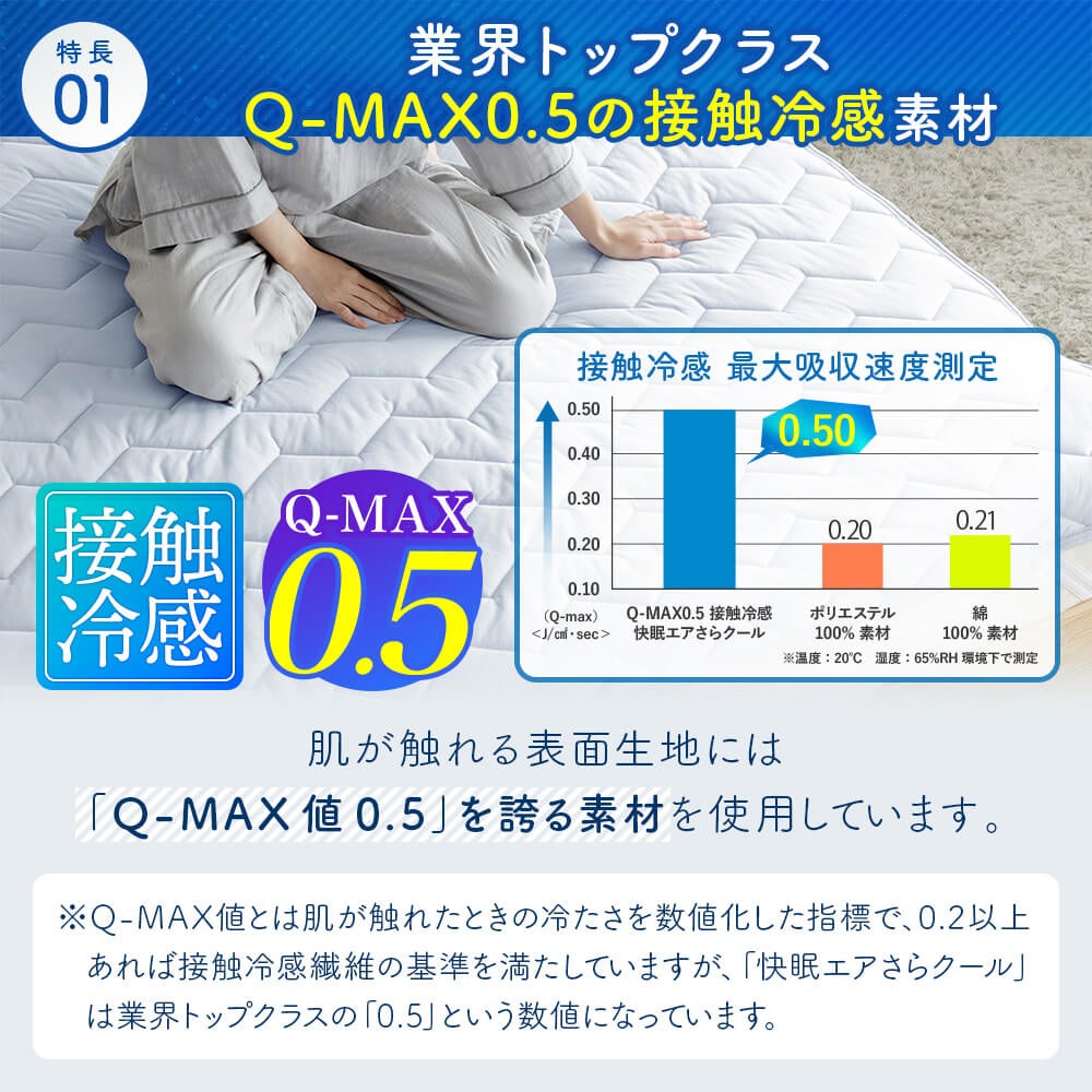 他の画像を見る キューマックス 夏用 涼感 快眠 昼寝 超冷感 丸洗い 【ダブル】Q-MAX0.5 接触冷感 快眠エアさらクール 敷パッド プレミアムタイプ ¥ 4,499 税込 在庫切れ カートに入れる お気に入りに登録する