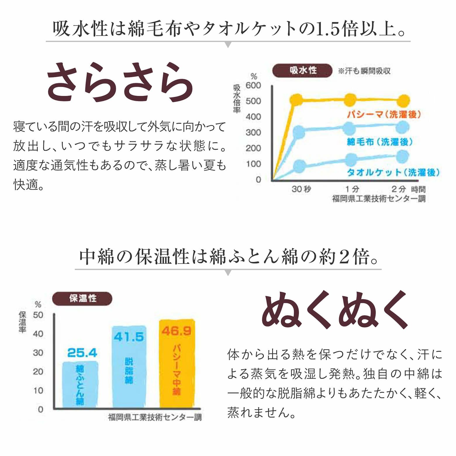 ・保温性 ~ 寝具として保温性十分。脱脂綿は綿ふとん綿に比べて保温性が高い。