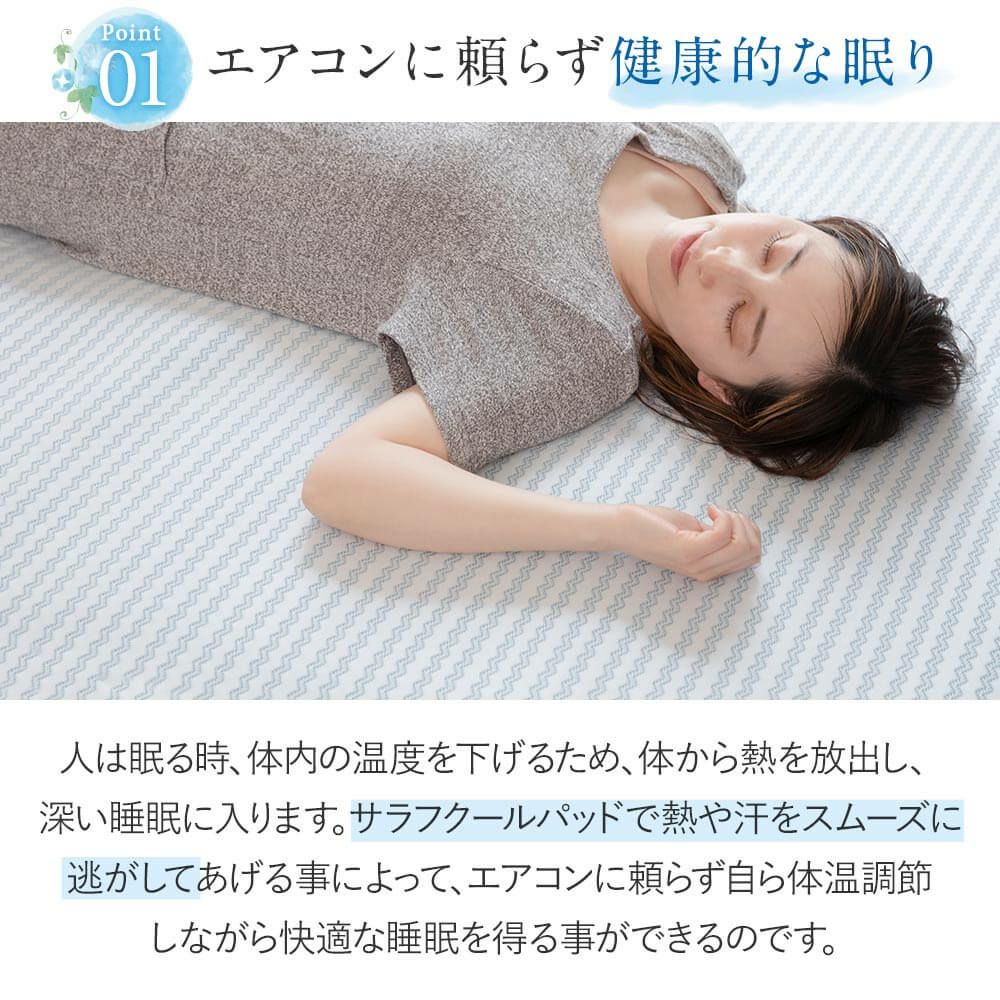 「高通気性」と「サラッとクールな肌触り」を備えた立体構造の【Salaf】サラフベッドパッドです。表面は滑らに編み立ててあるので、直接お肌に触れてご使用いただけます。夏の快眠は【Salaf】サラフにお任せ!