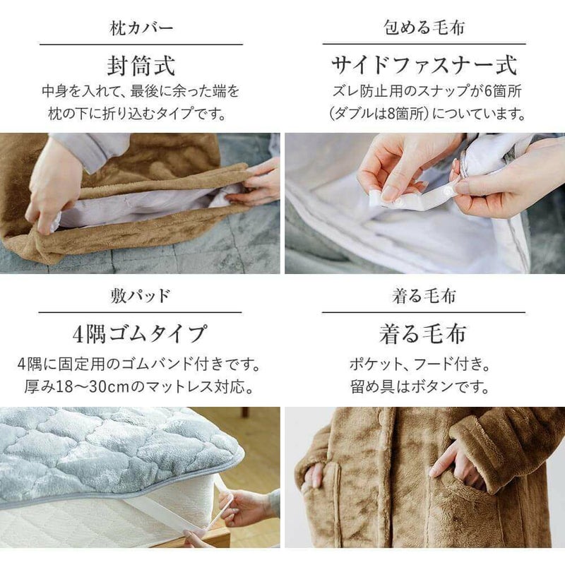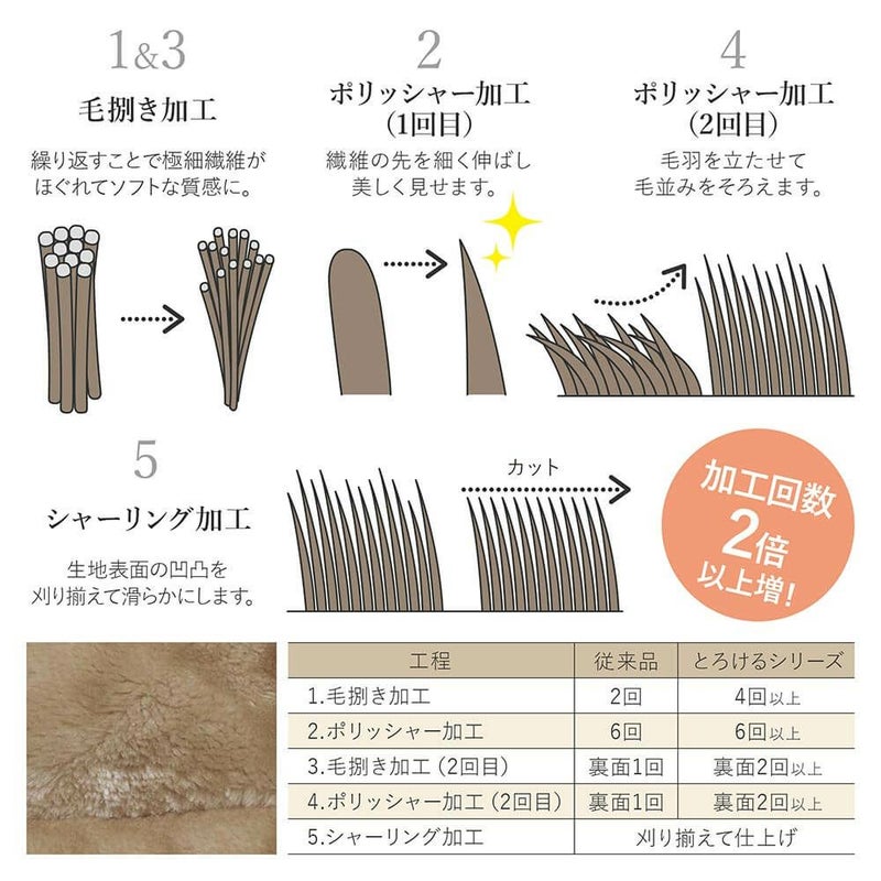 とろけるような極上の肌触りと、驚くほどのなめらかさ。高密度の極細繊維が空気をため込むため、ふんわりあたたかく包みこまれるような心地良さです。表生地と中綿のボリュームをアップする事で、さらに上質な寝心地とあたたかさに。中綿が抗菌防臭仕様なのも、うれしいポイントです。