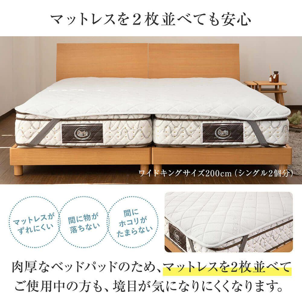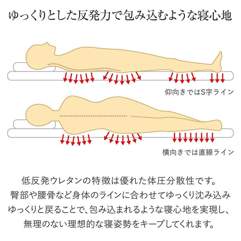 ゆっくりとした反発力で包み込むような寝心地が特長のベッドパッドです。思わずほおずりしたくなる極上なやわらかさ。プレミアムな肌ざわりで、オールシーズン活躍します。丸洗いもできるので、いつも安心清潔です。横向き寝が多い方、体格の小さい方にお勧めです。マットレスの寝心地改善にもご使用いただけます。
