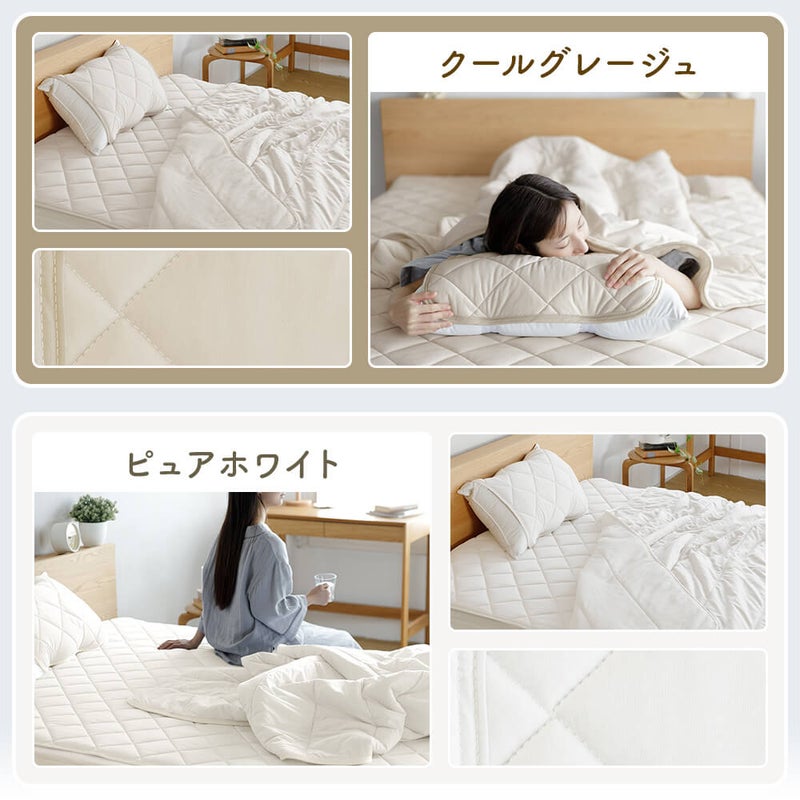 接触冷感値は最高級の「Q-MAX0.5」、触れた瞬間にひんやり気持ちいい。素材が体熱を素早く拡散するため、ベタつかず一晩中快適です。洗濯機で丸洗い可能な乾きやすい素材、お手軽に洗えるのも魅力です。
