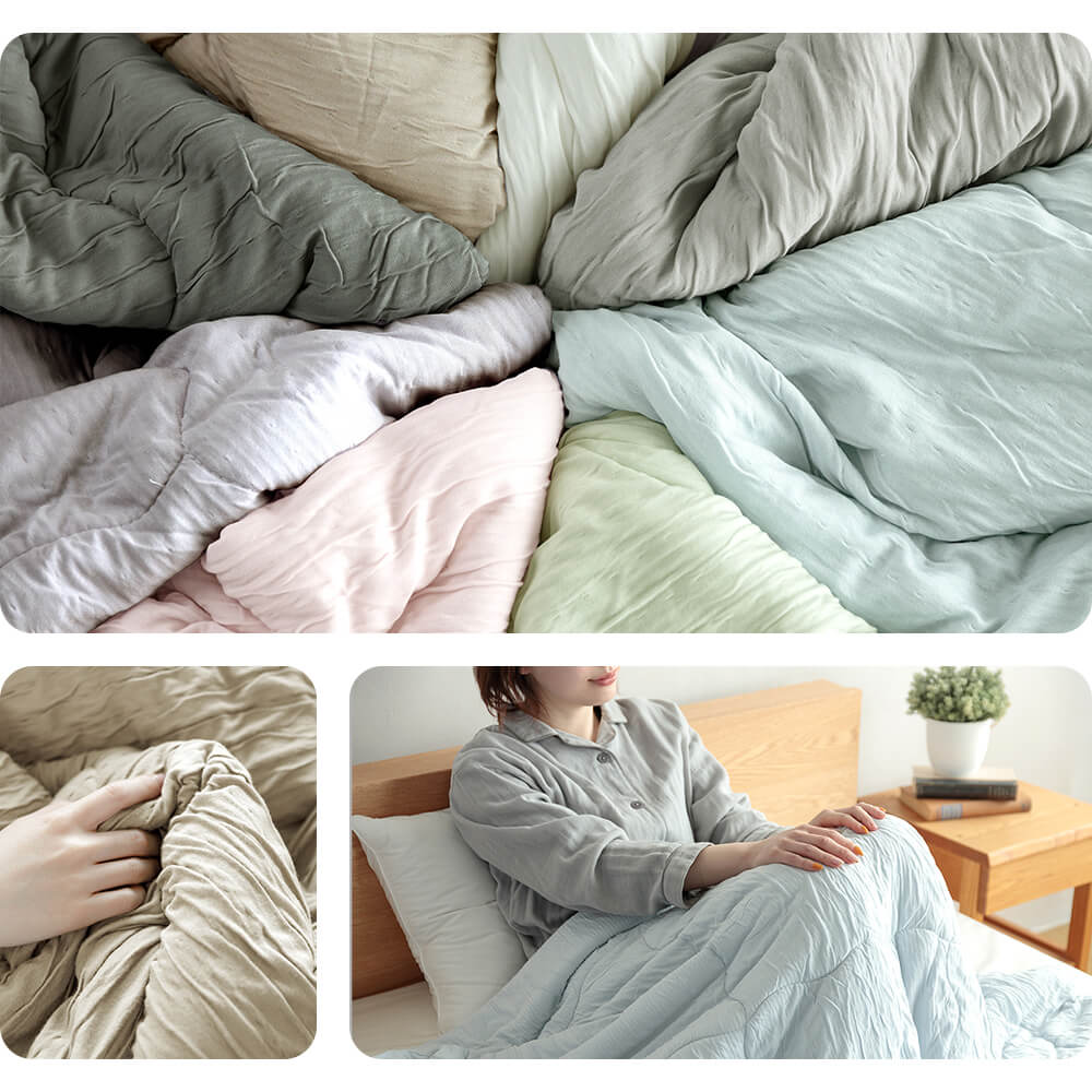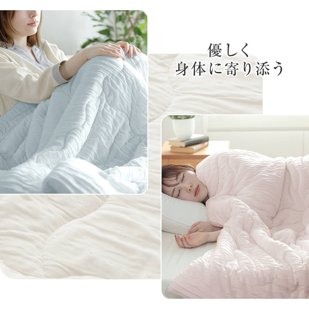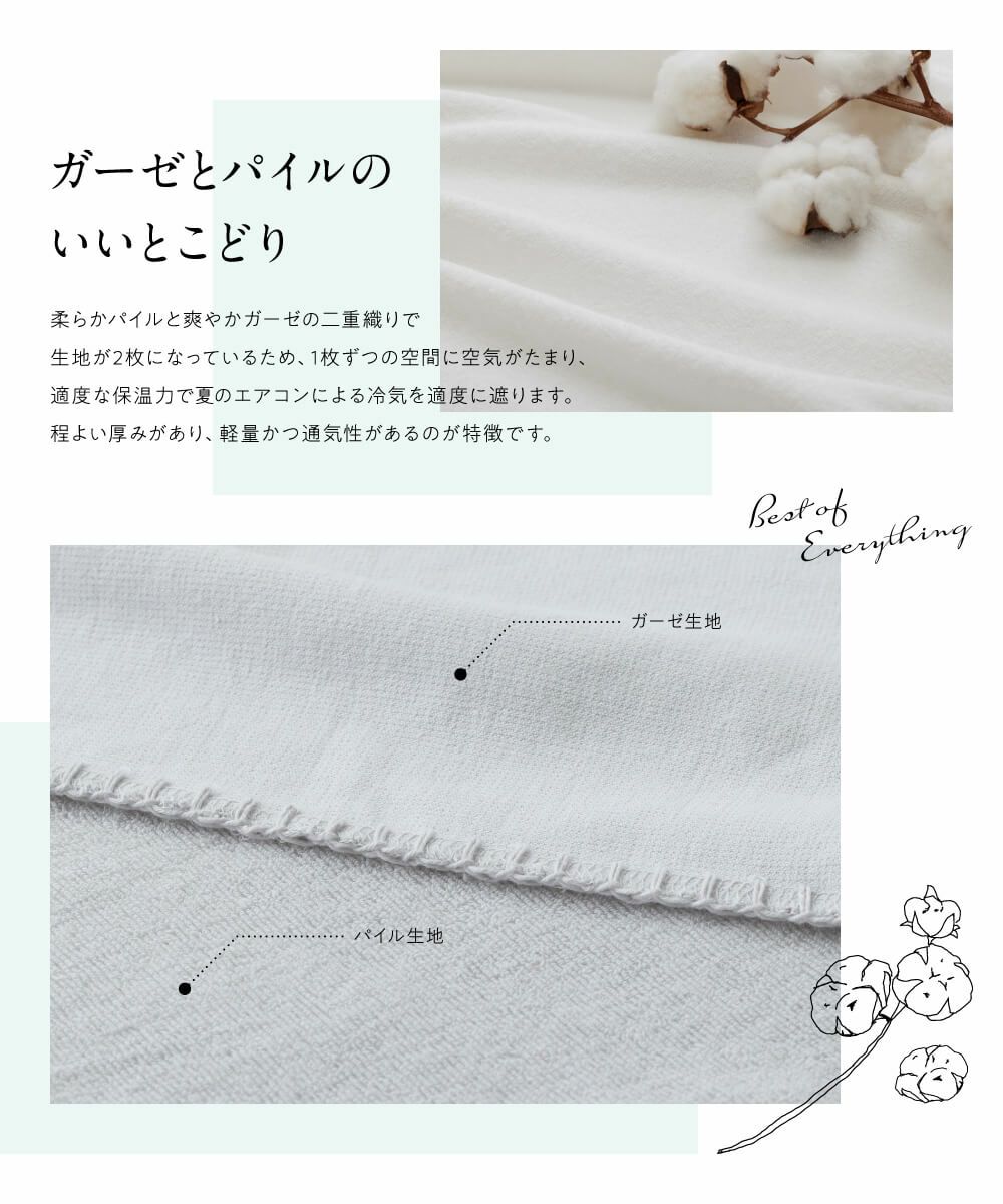 シーンに合わせて使い方は色々。暖かい季節は一枚で、肌寒い季節のお昼寝に、
