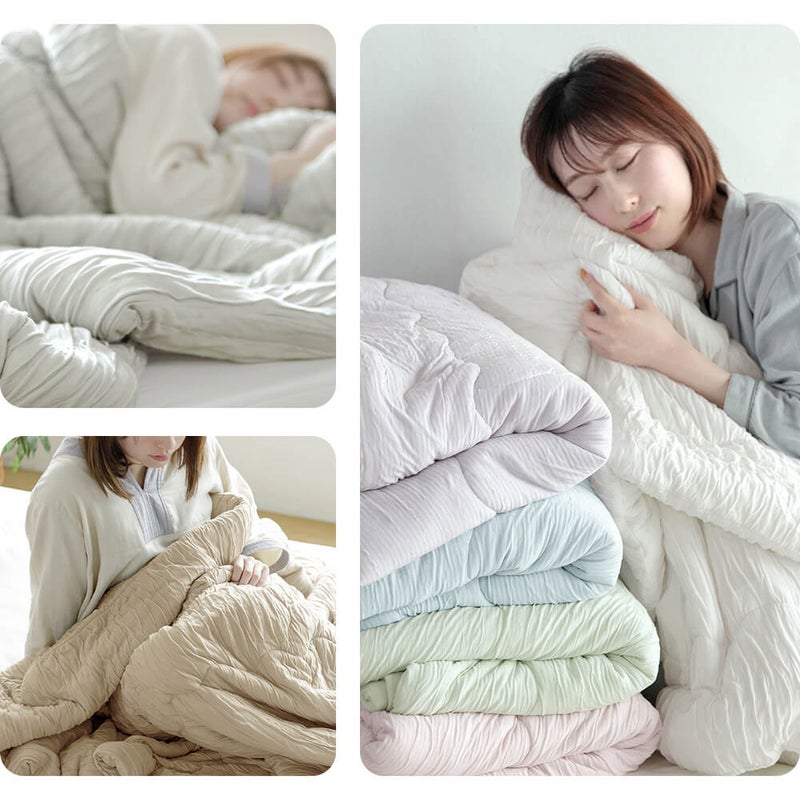 特殊加工した生地と、こだわりの中綿の組み合わせにより、驚くほど柔らかい質感を実現しました。まるでメレンゲに包まれるような感覚、あまりの心地良さで手放すことができなくなります。