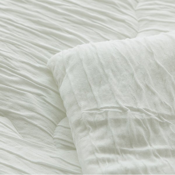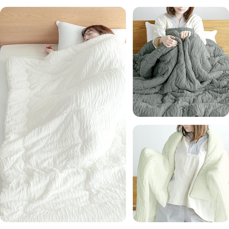 特殊加工した生地と、こだわりの中綿の組み合わせにより、驚くほど柔らかい質感を実現しました。まるでメレンゲに包まれるような感覚、あまりの心地良さで手放すことができなくなります。プレミアムタイプは生地に椿オイル加工をして、さらにとろりと気持ち良く仕上げました。